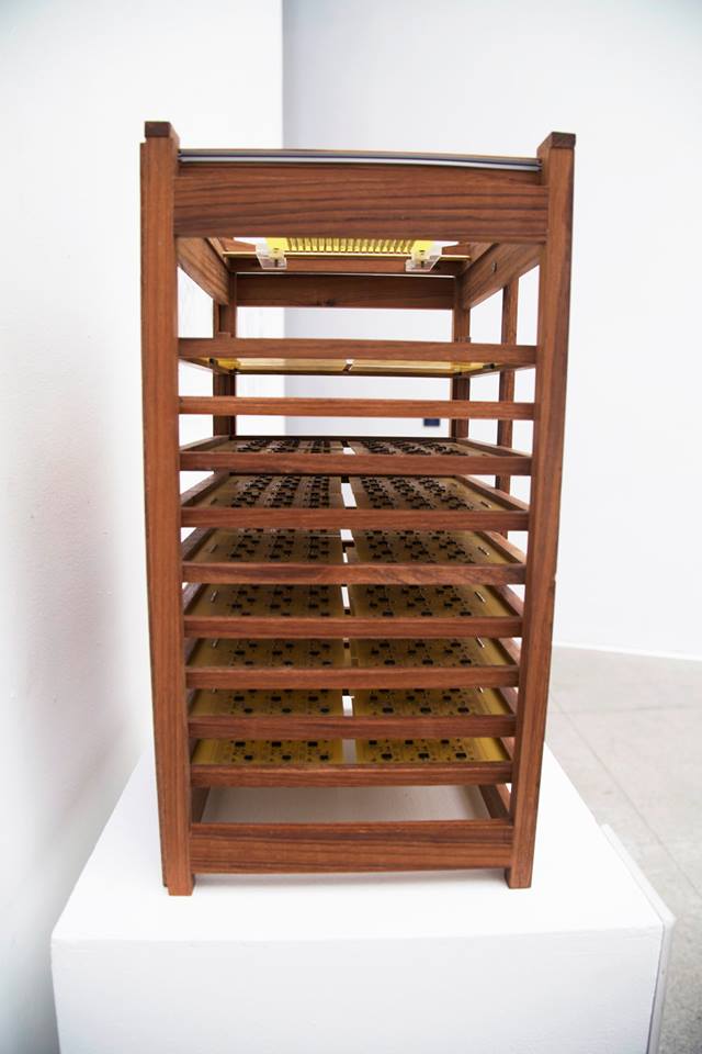 The Silkworm Project seeks to design a hybrid interactive machine consisting of silkworms and electronics, with the ultimate goal of generating self-organized flat and spatial silk structures. The silk machine utilizes a closed feedback loop system between the organic and the artificial, where a silkworm's each present position within the spinning area of the machine motivates it to move towards its next position. This interaction is documented through the silk spun by the worm. Currently, this piece is still under development.